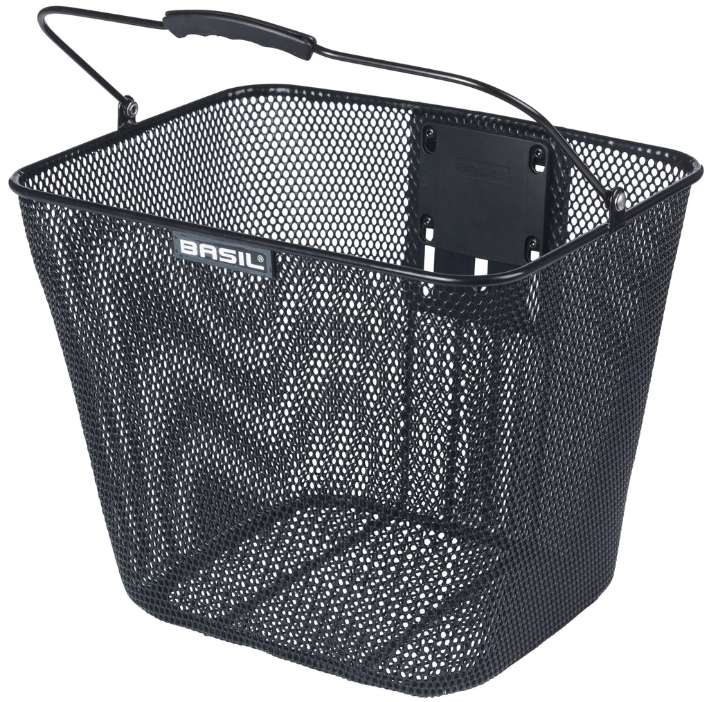 Basil Bilbao voormand KF, staal, fijnmazig, afneembaar, inclusief voorgemonteerde KF plaat (70158), past op Basil KF stuurhouder (70177) en stuurpenhouder (70189) (apart verkrijgbaar), hengsel met kunststof grip,mand in verstelbare hoogte dmv sleuven,zwart DB0906A Basil Bilbao KF mand zwart Ontdek de Basil Bilbao voormand KF - de perfecte combinatie van stijl en. Doe je regelmatig op de fiets een boodschap bij de supermarkt of ga je met plezier naar de markt? Dan komt deze stevige fijnmazige fietsmand van staal goed van pas. Natuurlijk kun je de mand ook voor andere doeleinden gebruiken. Zo kun je prima je handtas kwijt of bijvoorbeeld een kleine sporttas. De mand is geschikt voor montage aan je stuur. Hij is afneembaar en wordt geleverd met een voorgemonteerde KF-plaat (70158), wat hem compatibel maakt met de Basil KF-stuurhouder (70177) en stuurpenhouder (70189) (beide apart verkrijgbaar). De bevestiging van de mand doe je eenvoudig zelf. Het prettige aan de Basil Bilbao fietsmand is dat de mand in hoogte verstelbaar is. gecombineerd met jij zelf welke hoogte voor jou uitgesproken is. Deze functionele en stijlvolle mand komt in een tijdloos zwarte kleur. Eigenschap: Fijnmazig staal in stijlvolle zwarte kleur