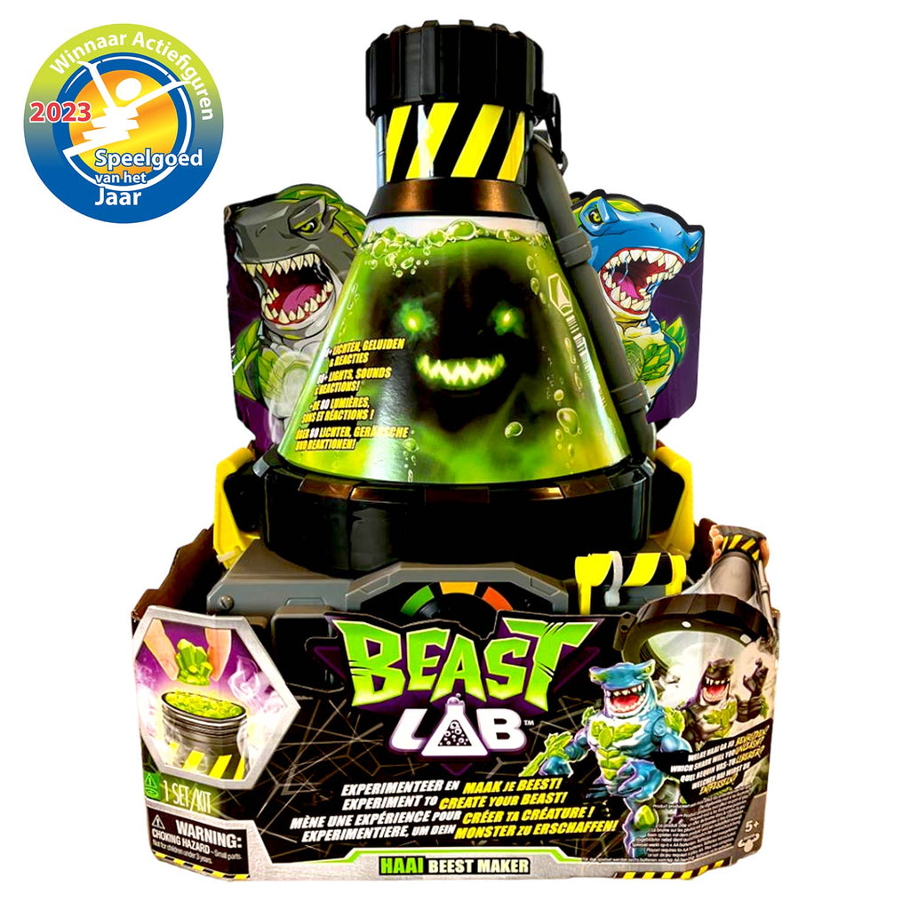 In de Beast Lab - Beest Maker zit ergens ver weg een Haai verborgen, wachtend tot hij gevormd en krachtig wordt! Door alle stappen van het Experiment te doorlopen zul je deze interactieve Haai zelf creëren en uit de Capsule moeten bevrijden. Door de Capsule te vullen met alle ingrediënten die je Beest zijn soort, kleur, huid en kracht geven, ontstaan er een vloeistof waarvan je Haai zal ontstaan. De Basis van de Beest Maker zal verschillende signalen geven, die jij moet toepassen. De onthulling van je Haai is een ultieme en unieke beleving! De vloeistof verdwijnt en uit rook zal je interactieve Haai met zijn eigen wapen verschijnen! Actieve krachten en zie hoe hij zijn power aanval voltooid. Leer hem kennen en zie hoe zijn borst oplicht terwijl hij zijn brulgeluid laat horen! Er is een Navulverpakking (Beast Lab Refill Pack) met twee nieuwe Experimenten los verkrijgbaar. Batterij informatie: Beest Maker: 6 x AA batterijen (niet meegeleverd) - Beest: 3 x AG/LR44 batterijen (meegeleverd). Leeftijdsindicatie: 5 jaar+.