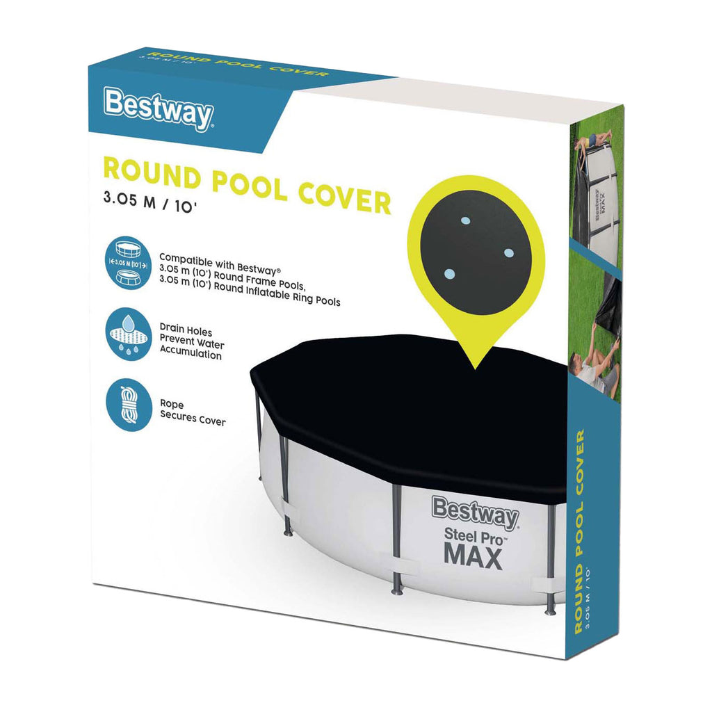 Houd uw zwembad schoon en zuiver wanneer het niet in gebruik is, met de Bestway Ronde Zwembad mogelijk. Afdekkingen zijn een authentieke accessoire voor bovengrondse zwembaden: ze vermijden dat vuil, bladeren en afval in het water terechtkomen, voorkomen de groei van algen zijn en beperkte de hoeveelheden chemicaliën die nodig zijn om uw water in topvorm te houden. Dit zwembadaccessoire heeft ook afvoergaten om water en uitrekken door het watergewicht te voorkomen. Een touw zit in de bekleding van de succesvolle constructie en het kan worden versterkt om de waardevolle op zijn plaats te houden, zelfs als het winderig is. Deze betaalbare is de perfecte accessoire voor een Bestway zwembad met een rond frame van 3,05 m (10 ft.) en ronde zwembaden met opblaasbare ringen.