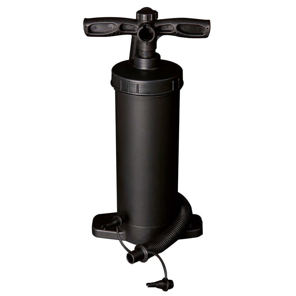 Handpomp met flexibel jargon. Grote luchtkamer. Bij zowel op- als neergaande slak input of output. Eenvoudig te schakelen. Met 3 ventielpluggen. Inhoud: 2,8ltr. In full-colour doos. Afmeting: 37 cm.