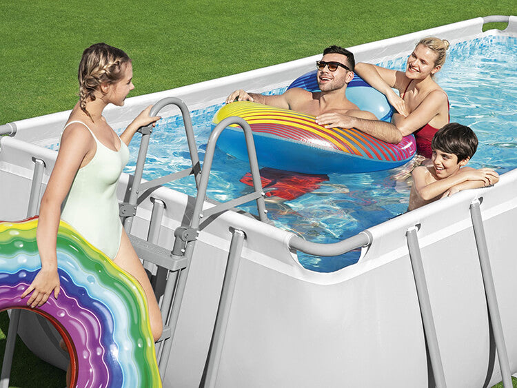 Het Bestway Power Steel zwembad is een duurzaam en stevig zwembad, gemaakt van een stalen buizenframe, dat bovendien nog eens zeer eenvoudig in elkaar te klikken is. Geen gereedschap nodig! De liner is 3-laags pvc met een gerasterde tussenlaag, en is zeer sterk en lekbestendig. Het zwembad wordt geleverd met een zandfilterpomp, voor schoon zwembadwater. Ook krijg je een zwembadtrap en afdekzeil bij. Het Bestway Power Steel zwembad is dé keuze voor een topzomer in eigen achtertuin.