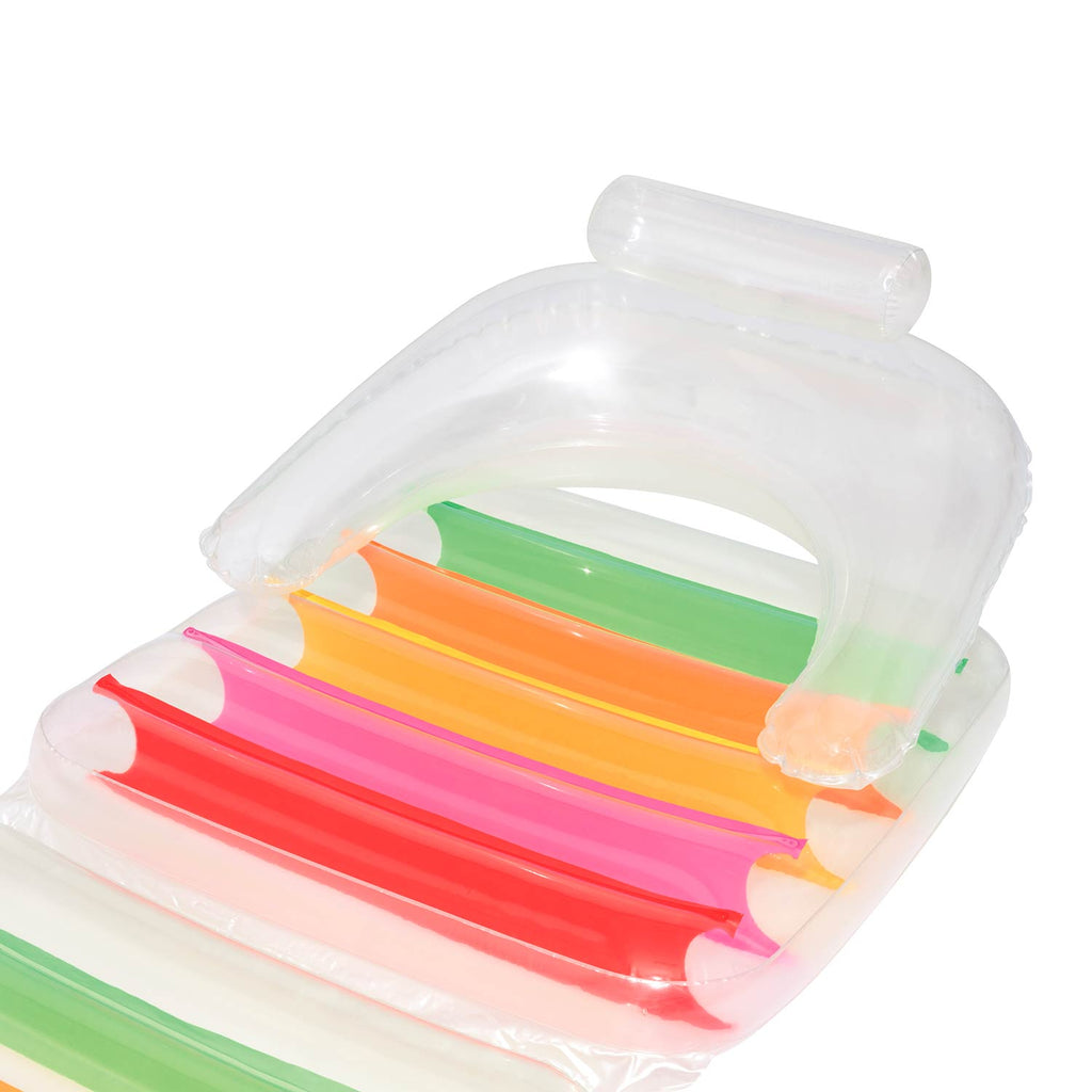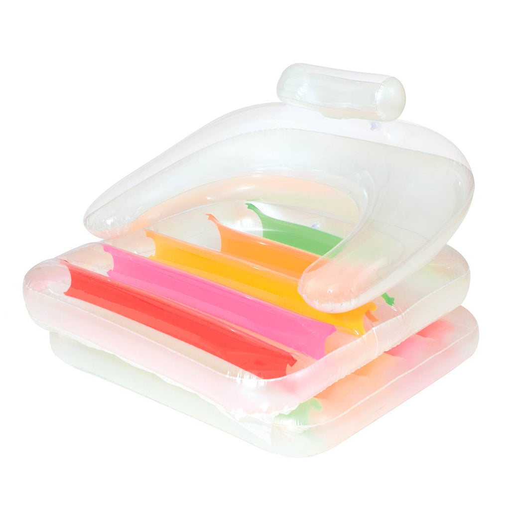 "Loungen op het water doe je met de luchtbedden van Bestway. De High Fashion Folding Lounge Chair is een opblaasbare en uitklapbare stoel. Hierdoor kun je hem zowel als stoelen als lounge luchtbedgebruiken. De Lounge Chair heeft een transparante top met uur I beam constructie en is voorzien van een tapijt en armsteun. De stoel heeft drie luchtkamers en een maximaal draaggewicht van 90 kg. Uitgeklapt heeft de Lounge Chair een afmeting van 201 x 89 cm." Productspecificaties: - Opblaasbare en uitklapbare stoel - Kan gebruikt worden als stoel en lounge luchtbed - Transparante top met inspiratie I beam constructie - Voorzien van rug en armsteun - Drie luchtkamers - Maximaal draaggewicht: 90 kg - Afmeting uitgeklapt: 201 x 89 cm