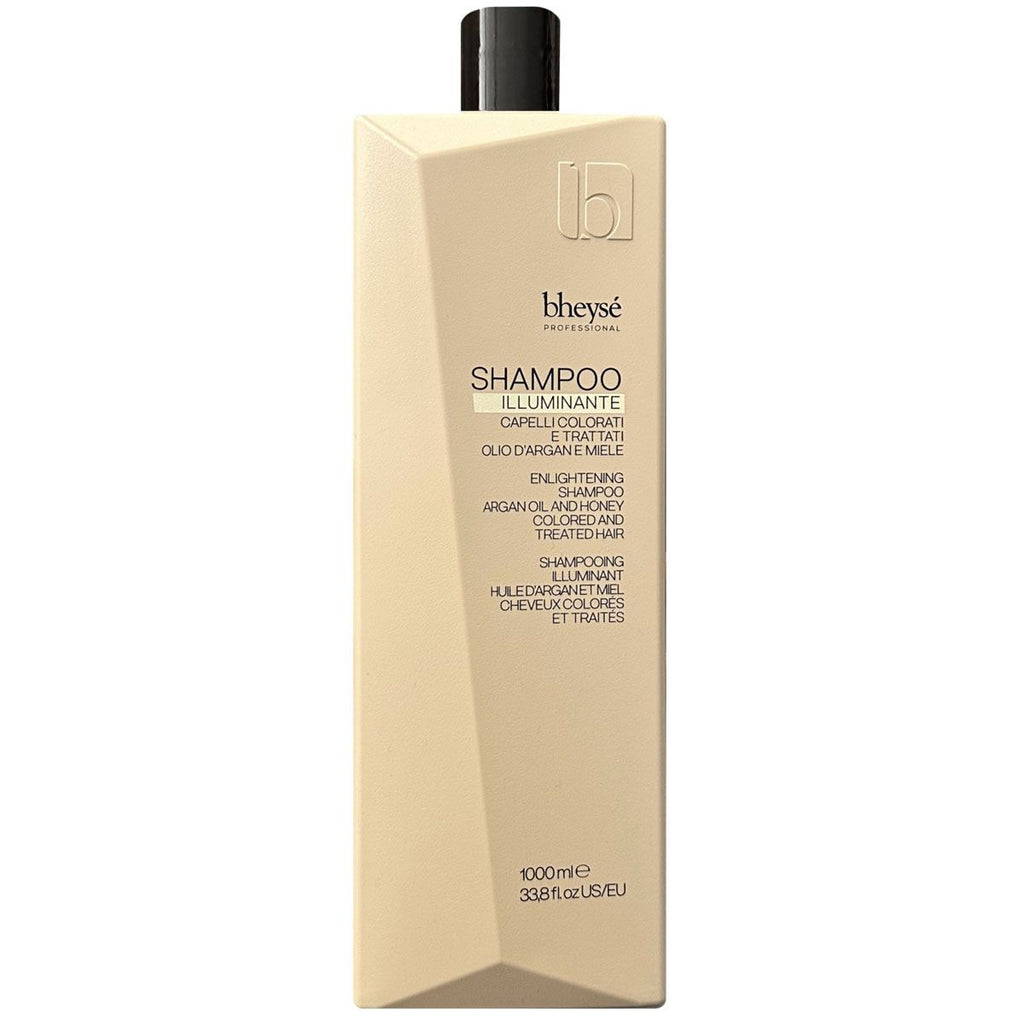 is een verhelderende shampoo met arganolie en honing speciaal voor gekleurd en behandeld haar. Bheysé Illuminante Shampoo omhult en beschermt het haar zonder het te verzwaren. De milde formule beschermt de haarkleur. Deze handige verpakking van 1L is ideaal voor in de salon. Een pomp is indien gewenst los verkrijgbaar. Gebruik: aanbrengen op vochtig haar en zorgvuldig uitspoelen. Gebruik in combinatie met het Bheysé Enlightening Masker met Argan Olie en Honing voor het beste resultaat. Plus- en minpunten Verhelderende shampoo Voor gekleurd en behandeld haar Arganolie en honing Voedt en beschermt zonder te verzwaren