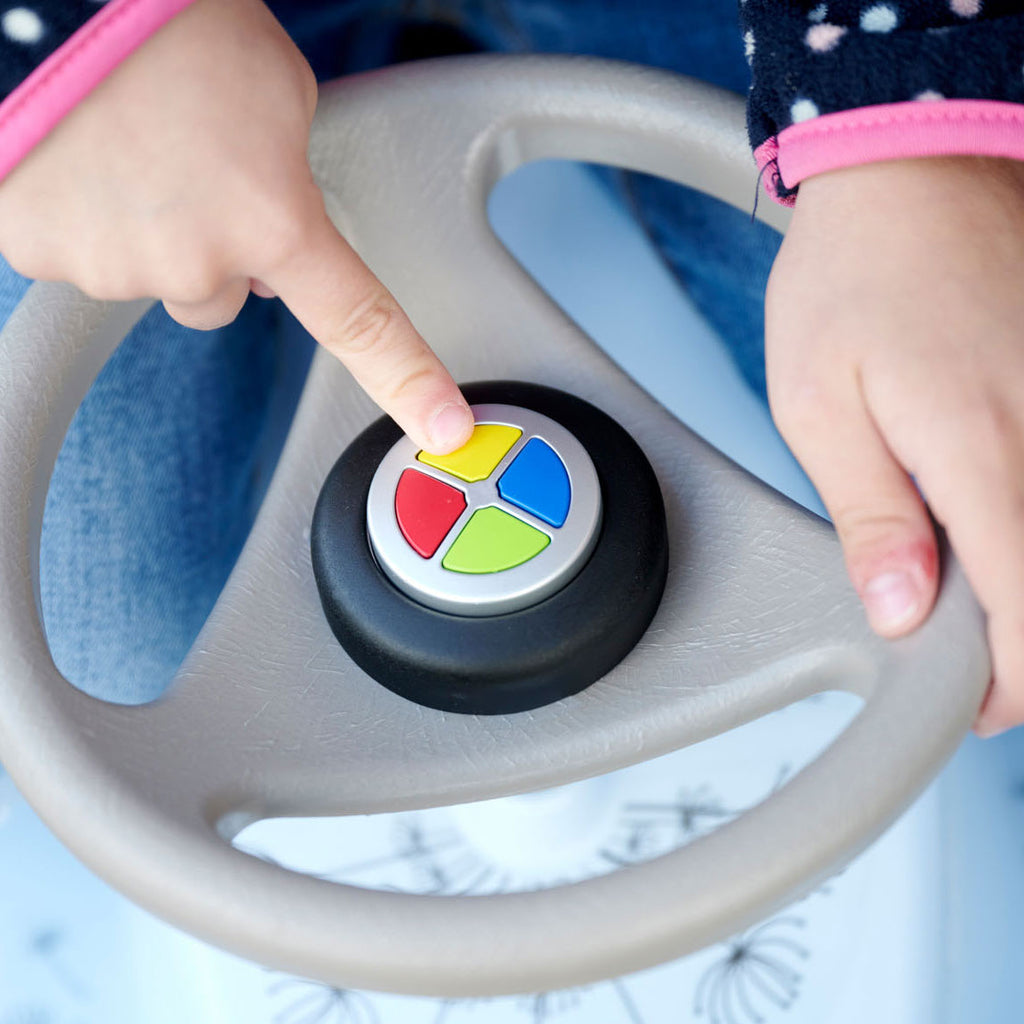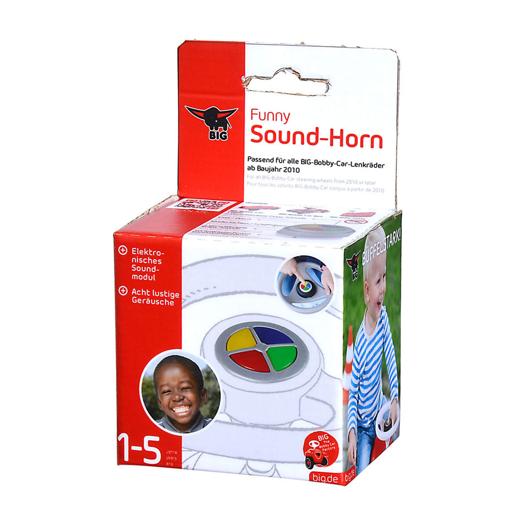 Elektronische toeter met grappige geluiden. Doorsnede 5 cm, hoogte 4 cm. Geschikt voor kinderen vanaf 12 maanden tot 5 jaar oud.