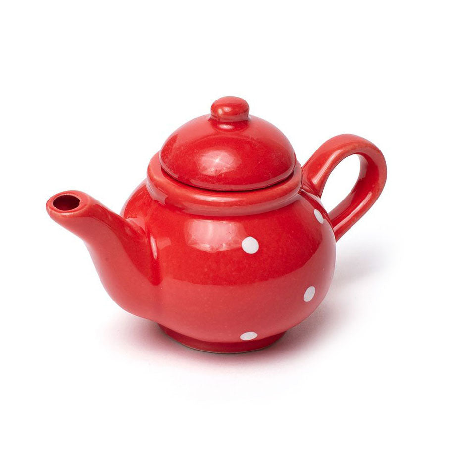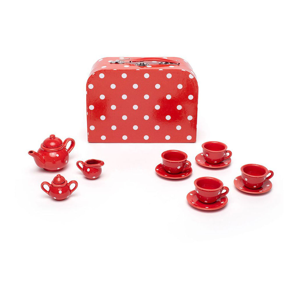 Schattig theeserviesje van porselein met klassiek rood met witte stippen dessin!