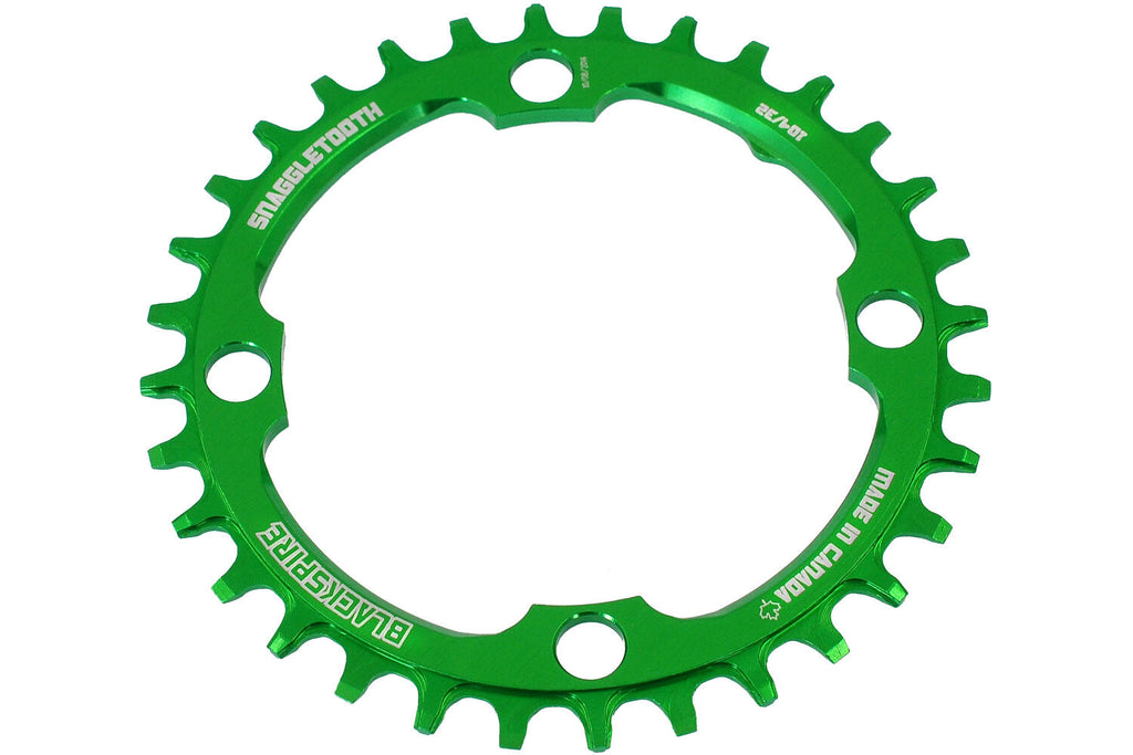 Artikelnummer: 595-332WPG EAN: 5060276568432 Merken: Blackspire Model: SNAGGLETOOTH Type: SMAL/BREED PROFIEL Materiaal: Aluminium Steek (mm): 104 Aantal kettingbladen: Single Aantal tanden: 32 Kleur.: Groen