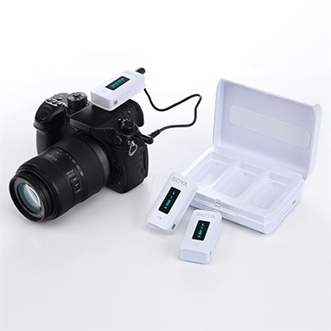 Met het BY-XM6-K2W microfoonsysteem maak je vlogs en livestreams met hoge kwaliteit audio. Het systeem bestaat uit 2 zenders en 1 ontvanger, waarmee je in stereo kunt opnemen. De 2,4 GHz frequentieband zorgt voor stabiel geluid, met een bereik van 100 meter tussen de zender en ontvanger. Het opladen van de zenders en ontvanger doet je met de oplaadcase, waarin ze direct worden opgeladen. De batterijduur is 7 uur, dus je kunt de hele dag opnemen. Het systeem wordt geleverd met een lavalier-microfoon en oplaadkabels. Je kunt live meeluisteren via de 3.5mm poort en een hoofdtelefoon aansluiten. De zender heeft een feitelijk omnidirectionele microfoon en je kunt ook een lavaliermicrofoon aansluiten via de MIC IN-poort.