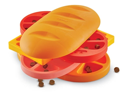 Het is een speeltje voor de hond waarbij behendigheid en intelligentie getraind worden. Dit speeltje heeft vier lagen met 16 compartimenten die open draaien. De hond moet goed nadenken om bij het eten te komen. Hierdoor kan het spel ook gebruikt worden als slowfeeder. Een leuke spellen waarbij behendigheid en intelligentie nodig zijn om een beloning te krijgen.