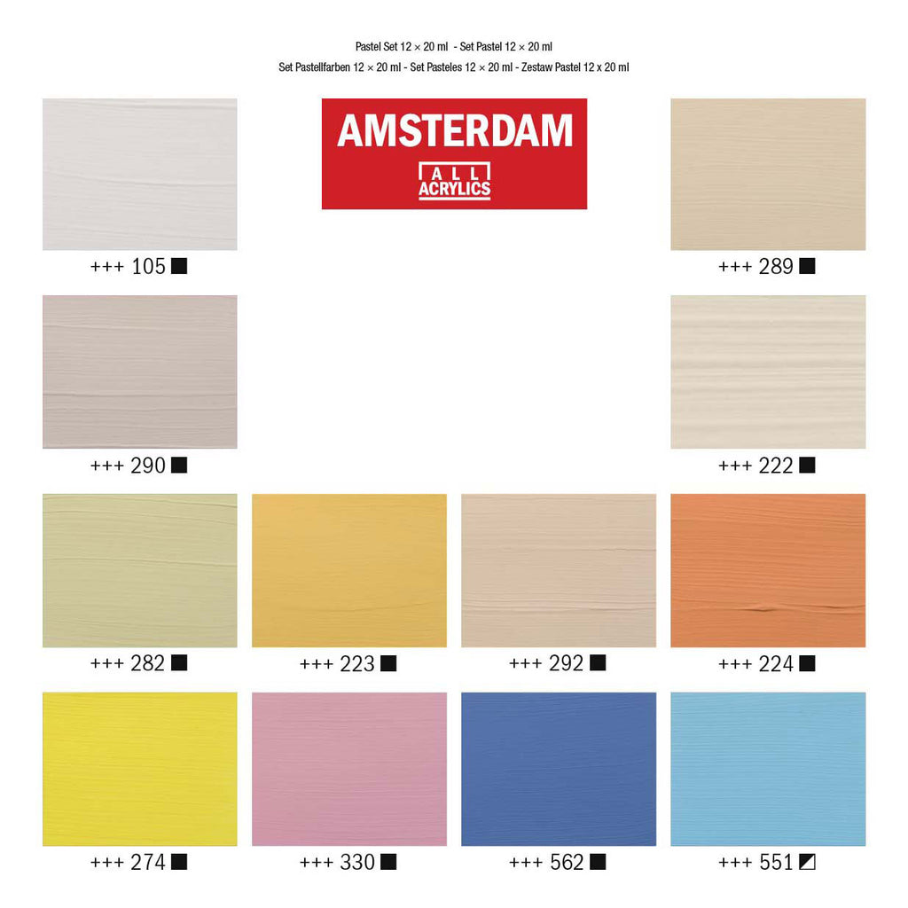 Inhoud: 12 x 20 ml tubes (105 Titaanwit - 289 Titaanbuff Licht - 290 Titaanbuff Donker - 222 Napelsgeel Licht - 282 Napelsgeel Groen - 223 Napelsgeel Donker - 292 Napelsgeel Rood Licht - 224 Napelsgeel Rood - 274 Nikkeltitaangeel - 330 Perzischroze - 562 Grijsblauw - 551 Hemelsblauw Licht).