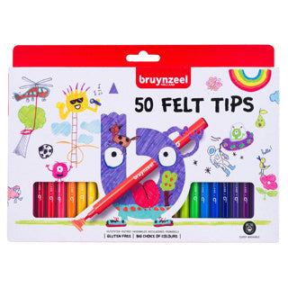 met de viltstiften van hoogwaardige kwaliteit van Bruynzeel kun je de mooiste tekeningen maken en de mooiste kleurplaten inktkleuren! Als je de stiften al een tijdje niet meer gebruikt hebt en ze een beetje uitgedroogd zijn, geef ze dan een tweede leven door ze in water te dompelen. Dankzij het plastic etui zijn de stiften gemakkelijk terug op te bergen in de elektronische verpakking. Deze unieke set bevat 50 viltstiften in bijna elke kleur die je maar kunt bedenken! Geschikt voor kinderen vanaf 4 jaar.