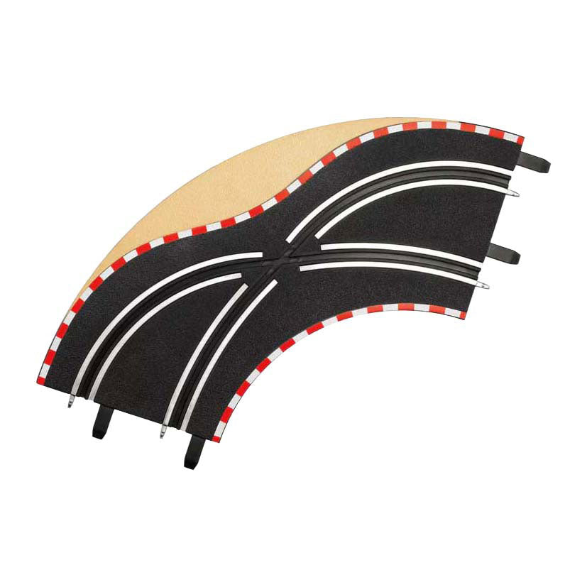 Set van 2 rijstrookwisselbochten voor Carrera racebanen op schaal 1:43. Compatibel met DIGITAL 143, GO!!! en GO!!! Plus. Elk baanstuk meet ca. 228 x 228 mm. Geschikt voor kinderen vanaf 6 jaar.