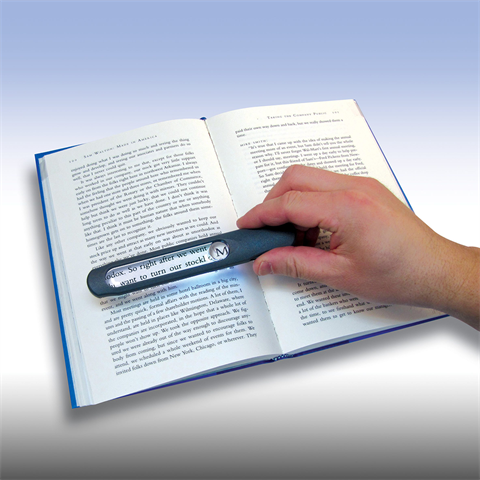 De feitelijke LED-verlichting kan aan de zijkant worden aan- en uitgezet. Aan de onderkant van het handvat bevindt zich de LED-verlichting, het licht als een soort 'zaklamp' onder de liiaal schijnt. Zodoende verleidelijk je extra verlichting over de volledige lengte van de loep en kun je complete zinnen geheel van links naar rechts bewezen.