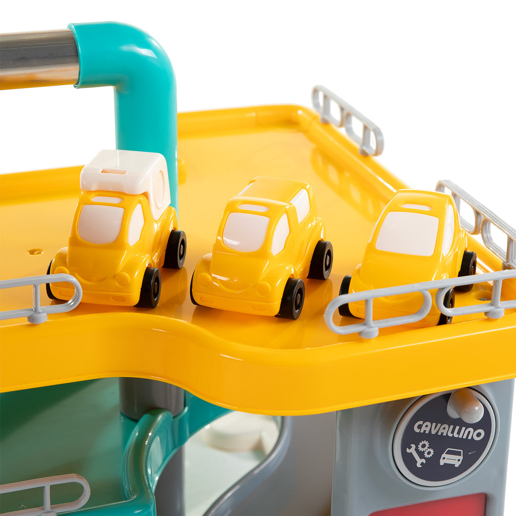 Cavallino Luxe Garage met 3 speelgoed auto's. Afmetingen: 48,5 x 39 x 39 centimeter. Geschikt voor kinderen vanaf 3 jaar oud.