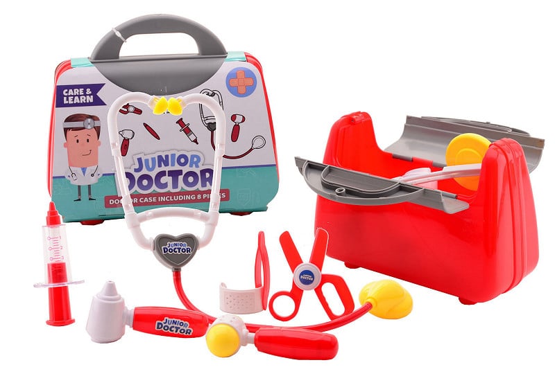 Johntoy dokterstas 8 delig. Dokterstas met accessoires 8-deligWaar is de patiënt? Met deze dokterstas met accessoires help je hem of haar er zo weer bovenop.