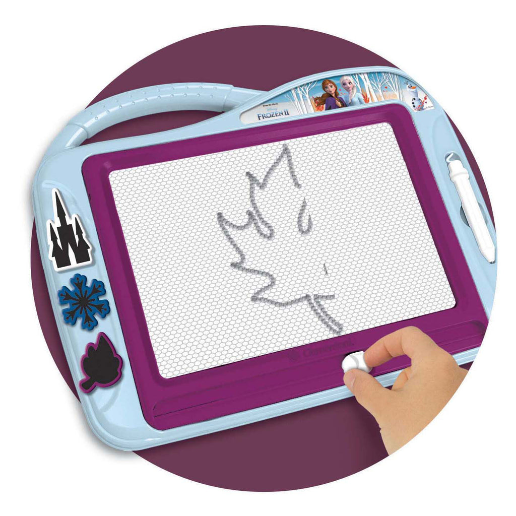 Een echt "magische" tekentafel om oneindig te tekenen en plezier te hebben met de personages van de Frozen wereld . Schrijf, teken en wis zoveel als je wilt! Met een praktische handgreep om het te dragen waar je maar wilt en drie mallen om je creaties te verrijken. Een ideaal speeltje om de creativiteit en verbeeldingskracht van kinderen te stimuleren.