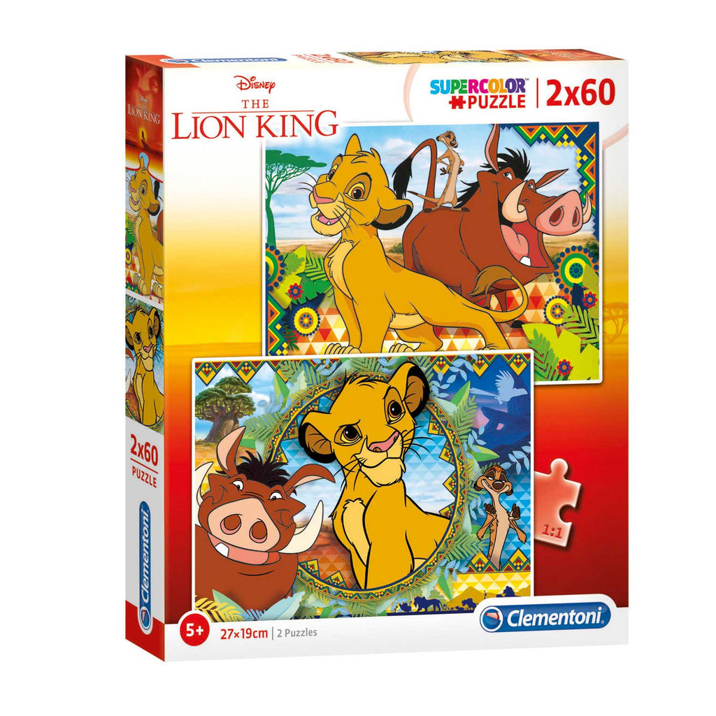 Legpuzzel van The Lion King. De set bestaat uit 2 puzzels van ieder 60 stukjes. Deze legpuzzels zijn gemaakt van stevig karton, wat puzzelen een stuk eenvoudiger maakt. Op de puzzels staan jouw favoriete personages uit The Lion King afgebeeld. Puzzelplezier gegarandeerd!