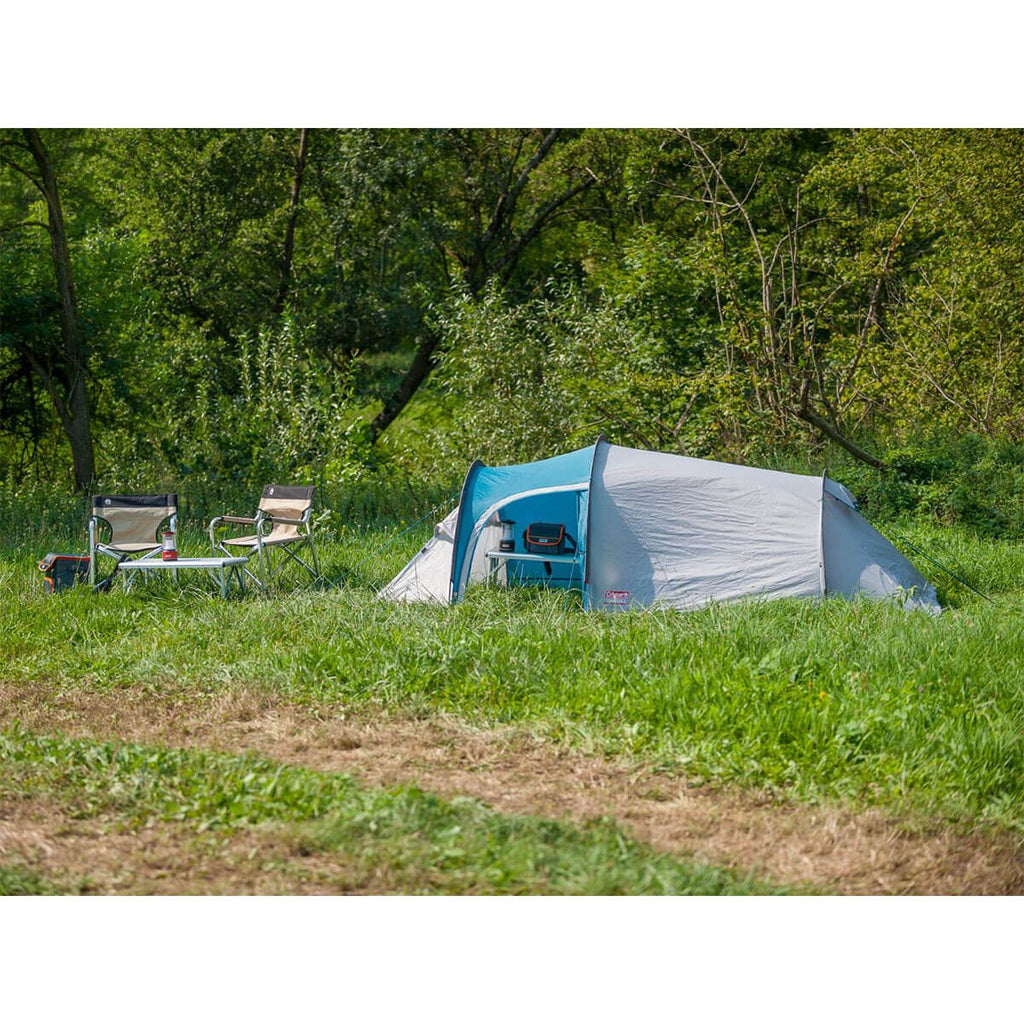 De Coleman Cortes 3 is een ruime en ruime tunneltent die perfect is voor een weekendje weg of een kampeertocht. Met slim ontworpen tentstokken van glasvezel is deze tent niet alleen snel opgezet, maar bevat hij ook slechts 4,1 kg. Na gebruik kan de tent eenvoudig worden opgeborgen in de bijgeleverde waterdichte dragers. De Cortes 3 biedt plaats aan drie personen in een aparte slaapcabine met een hoofdhoogte van 105 cm. De ruime voortent biedt voldoende ruimte voor bagage en er is zelfs geen plek voor een tafel. Productspecificaties: - Type tent: Tunneltent - Aantal personen: 3 - Gewicht: 4,1 kg - Hoogte slaapcabine: 105 cm - Materiaal tentstokken: Glasvezel - Inclusief waterdichte draagtas