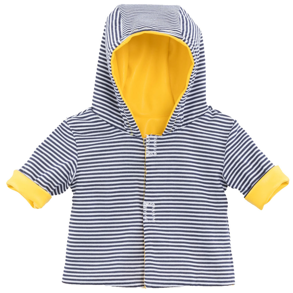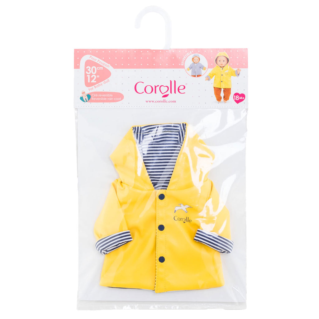 Het regent, het is nat… De omkeerbare Ciré Bords de Loire is ideaal om kleine poppen van 30 cm te beschermen tegen slecht weer! Jouw keuze voor je pop: een gele zijde met zeemeeuw print van een blauw-witte zijde in stof. De regenjas is gemaakt van zachte en resistente materialen en is gemakkelijk aan te trekken dankzij de klittenbandriemen die zijn aangepast aan de behendigheid van kleine handen van kinderen vanaf 18 maanden. Dit kledingstuk is geschikt voor alle poppen van 30 cm en deel maakt uit van een gevarieerde collectie kledingstukken en accessoires van Corolle. Onderhoud: De regenjas is wassen met de hand of op het handwasprogramma van de wasmachine. Geschikt voor kinderen vanaf 18 maanden.