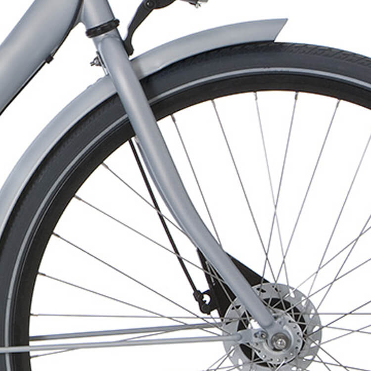 Cortina voorvork model Cortina U1. Kleur: Muis Mat. Geschikt voor damesmonturen in de maten 49, 53, 57 en 61cm. Uitgerust met rollerbrake beugel. Specifieke maat: 28inch, 1-1/8x278. Kleurnummer: PGSW 80011 Matt.