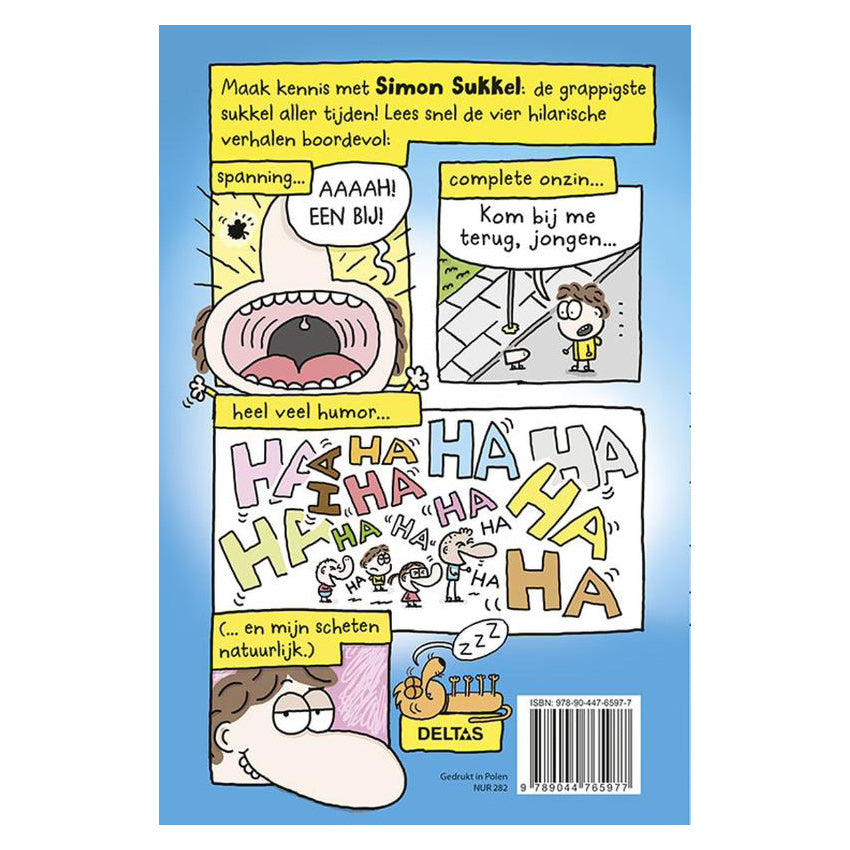 Simon Sukkel is terug! En hoe! Na de populaire bestseller-reeks die Deltas tien jaar geleden uitgaf, is Simon klaar voor gloednieuwe avonturen in deze hilarische graphic novel in full colour. Simon heeft er genoeg van om een sukkel te zijn en hij wil bewijzen dat hij cool is, maar dat is moeilijker dan gedacht. Hij wordt niet gevraagd door zijn twee beste vrienden om samen een verjaardagsfeestje te geven, hij speelt zijn neus kwijt en hij krijgt een saaie, zelf genaaide pop van zijn oma. Van de boeken van auteur en illustrator Jim Smith zijn wereldwijd meer dan 800.000 exemplaren verkocht. Hij won de Roald Dahl Funny Prize, de Scholastic Lollies award en stond op de shortlist voor de Waterstones-prijs. Vier doldwaze verhalen boordevol absurde humor die je hardop laat lachen! Perfect voor fans van Dog Man en Bunny vs Monkey Bonus! Met instructies om zelf Simon Sukkel stap voor stap te leren tekenen
