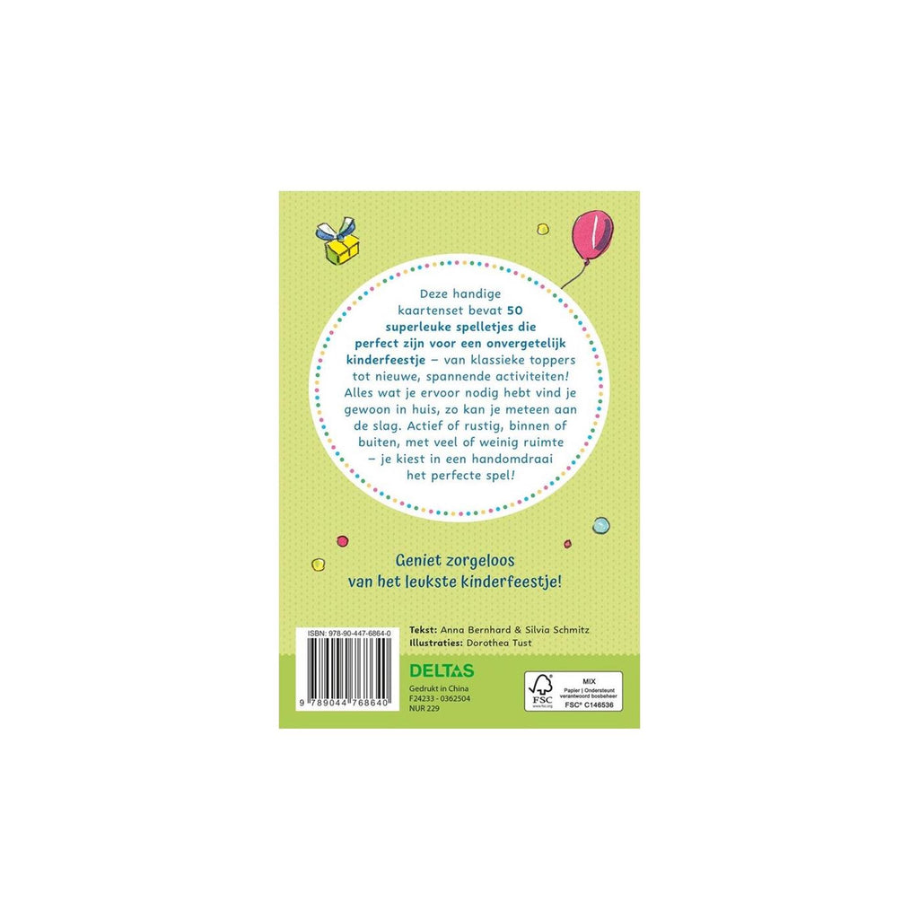 Deze kaartenset van Deltas bevat 50 superleuke spelletjes die perfect zijn voor een onvergetelijk kinderfeestje - van klassieke toppers tot nieuwe, spannende activiteiten! Alles wat je ervoor nodig hebt, vind je gewoon in huis, zo kan je meteen aan de slag. Op elke kaart staan handige icoontjes met informatie over de leeftijd, voorbereidingstijd en speelplek. Actief of rustig, binnen of buiten, met veel of weinig ruimte - je kiest in een handomdraai het perfecte spel! Geniet zorgeloos van het leukste kinderfeestje!