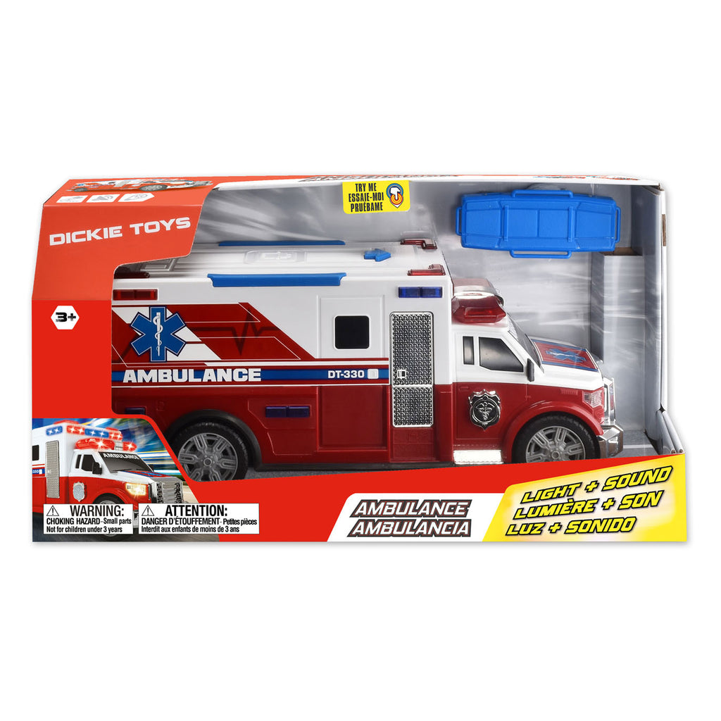 Maak plaats voor de ambulance! Lifesavers met een blauw licht en sirene - alles dat het oog van een jong soort op straat komt, is altijd een beetje in de speelkamer. De grote actie -ambulance van Dickie Toys heeft veel bewegende delen en een openingen achterpoort. Dit speelgoed voor kinderen leert uw soort wat te doen in het geval van een verspilling of uitstoot. De ambulance wordt geleverd met een brancard voor het wegvoeren van de verwondingen. Het speelgoedvoertuig heeft een vrijloopmechanisme en licht- en geluidseffecten. Het biedt ook een goede gelegenheid om te doen, ook het spelen met een paar tips over wat te doen in het geval van nood. Geef het educatieve speelgoed van je kind en het geweldige gevoel dat voortkomt uit het rood van leven!