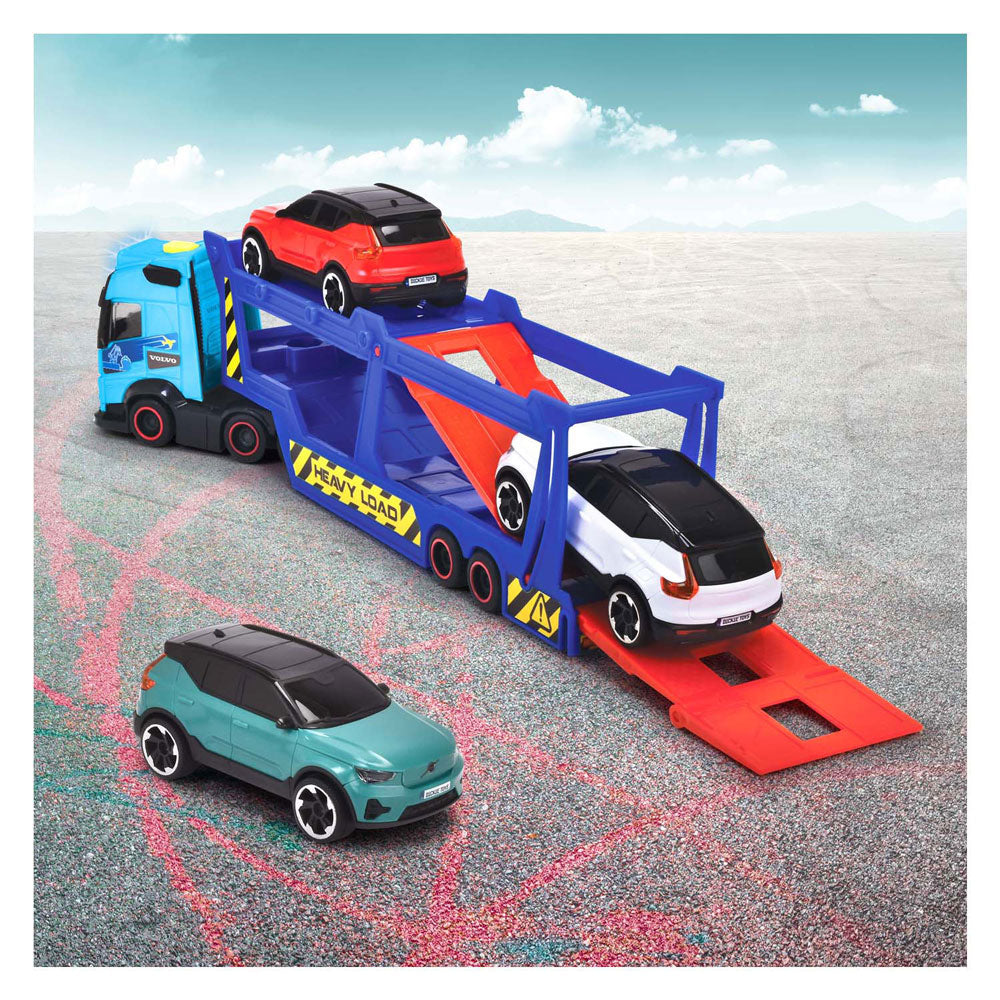 Autotransporter met twee verdiepingen van Dickie Toys, inclusief 3 auto's en neerklapbare laadklep. Met licht en geluid. Gemaakt van stevig kunststof, geschikt vanaf 3 jaar.
