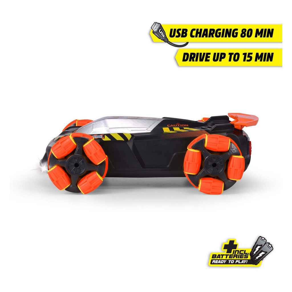 Maak je klaar voor rook, licht en actie met de RC Area Drifter van Dickie Toys! Deze 25 cm lange raceauto kan driften, draaien en stunten met coole rook- en lichteffecten. Bestuur hem met de 4-kanaals 2.4 GHz afstandsbediening en race tot wel 8 km/u. Inclusief oplaadbare batterij en USB-oplaadkabel. Geschikt voor kinderen vanaf 6 jaar. Let op: Niet geschikt voor kinderen onder de 3 jaar.