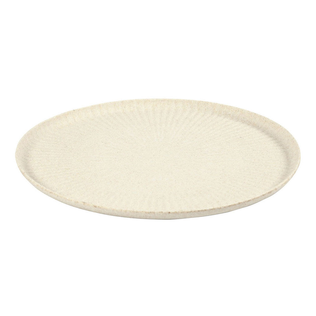 Rond dienblad met geplooide patroon gemaakt van bamboevezels. Bamboevezel met 20% polymeerbindmiddel is een milieuvriendelijk product dat eenvoudig gedecoreerd kan worden met Plus Color acrylverf, porseleinstiften, enz. Vorstbestendig tot -21° C