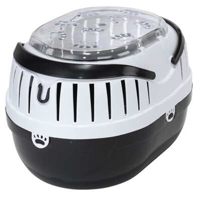 De reismand, ook wel transportbox genoemd, heeft een transparant deksel met ventilatiegaten in de vorm van pootjes. De box heeft hengsels waarmee u de box gemakkelijk kunt dragen.
