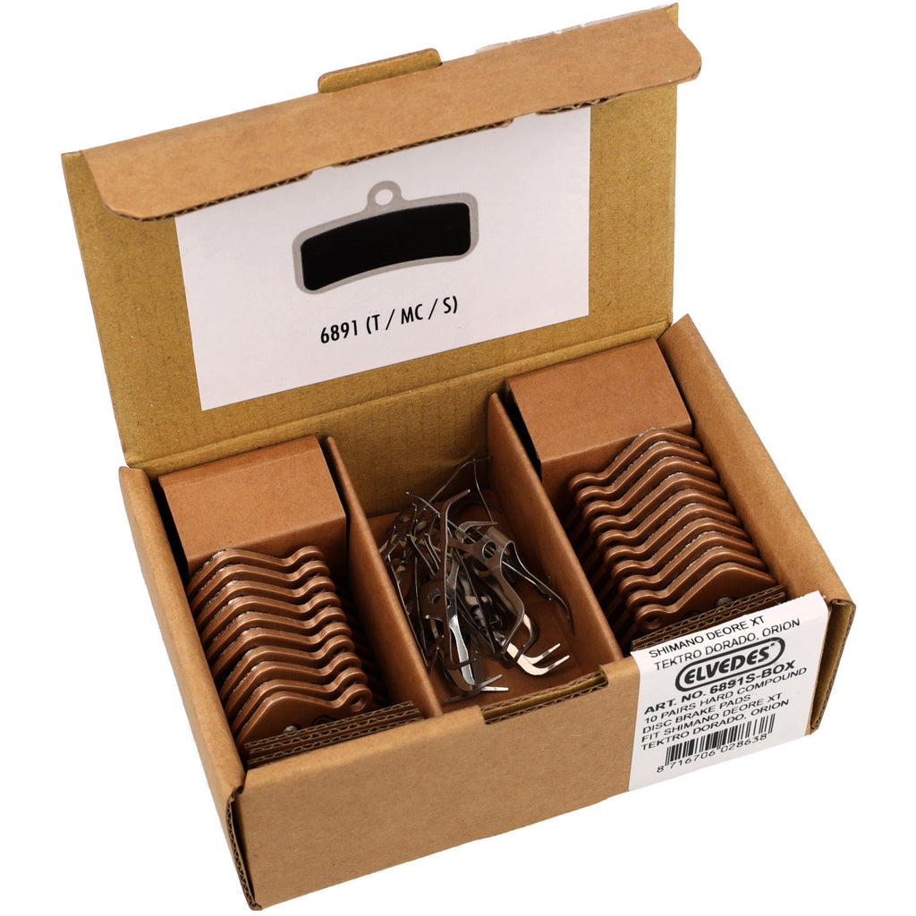 Elvedes schijfremblok gesintered Shimano BRM810, BR-M8120, BR-M8020, BR-M7120, BR-M6120, BR-M820, BR-M640, BR-MT520, BR-MT420 per 10 stuks, dit zijn bij Elvedes de goudkleurige blokjes met extra metaaldeeltjes voor meer robuusteheid tegen zand en water