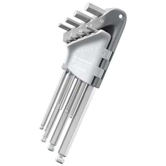 Facom set 9 extra lange inbussleutels met kogelkop in rvs