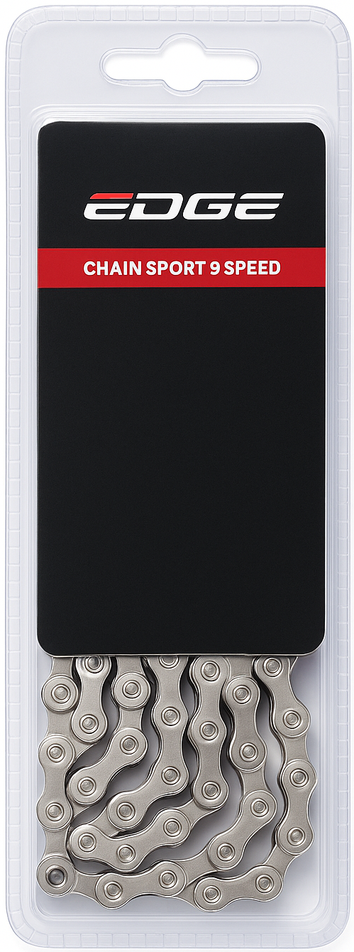 De Edge Sporty Ketting Derailleur 9 speed is een kwalitatief hoogwaardige fietsketting geschikt voor fietsen met 9 (HG) derailleurversnellingen. Deze ketting heeft 116 schakels en een maat van 1/2"x 5/64".