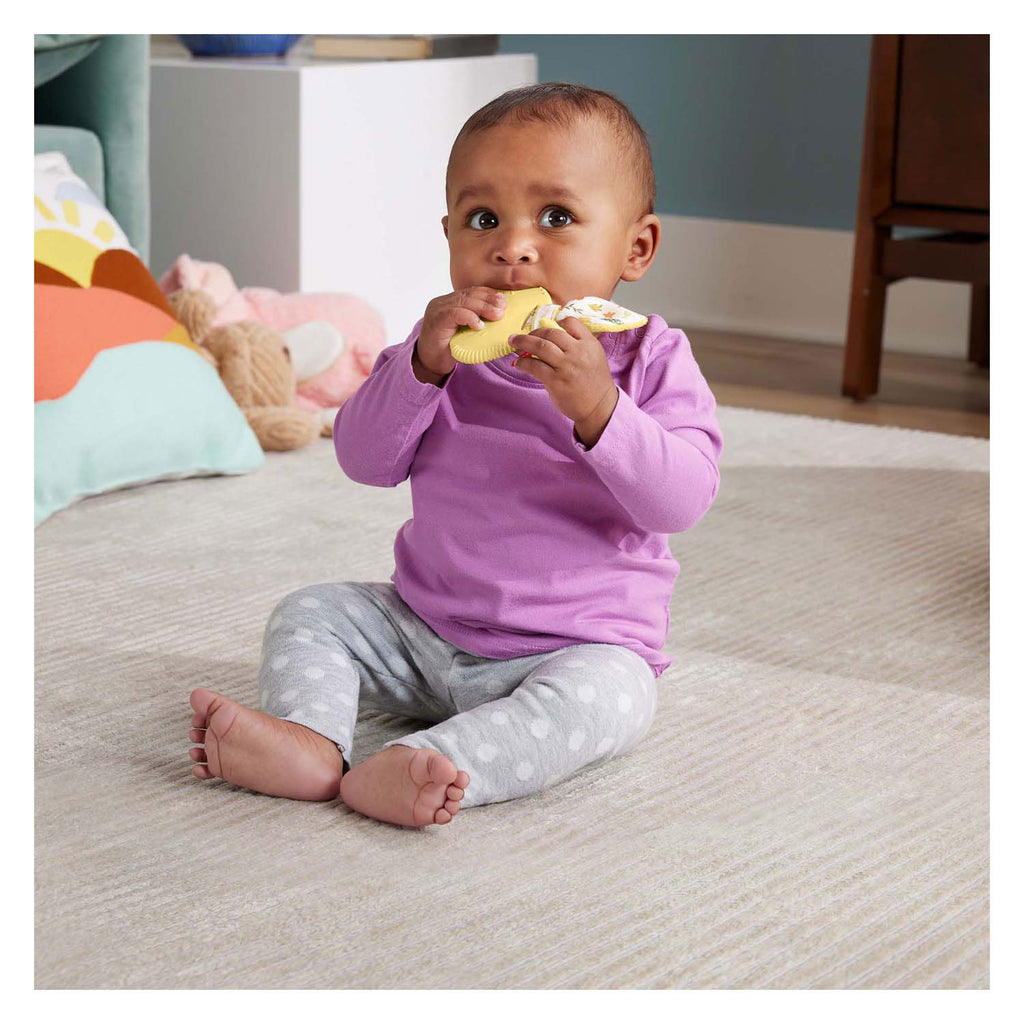 Baby's kunnen hun zintuigen verkennen met dit activiteitenspeelgoed met dierenthema van Fisher-Price®. Elk dier heeft een andere zintuiglijke ervaring voor kleintjes om te ontdekken, waaronder een BPA-vrije siliconen bijtring met konijn met satijnachtige oren, een axolotl spinner met ratelende kralen en een rammelaargans met een verbindingslus voor onderweg. Dit geweldige trio is gemakkelijk vast te pakken voor kleine handjes en helpt de fijnmotorische vaardigheden van je baby te verbeteren en tegelijkertijd het gevoel van aanraking, zicht en gehoor te versterken. (Apart verkrijgbaar en niet overal leverbaar.)