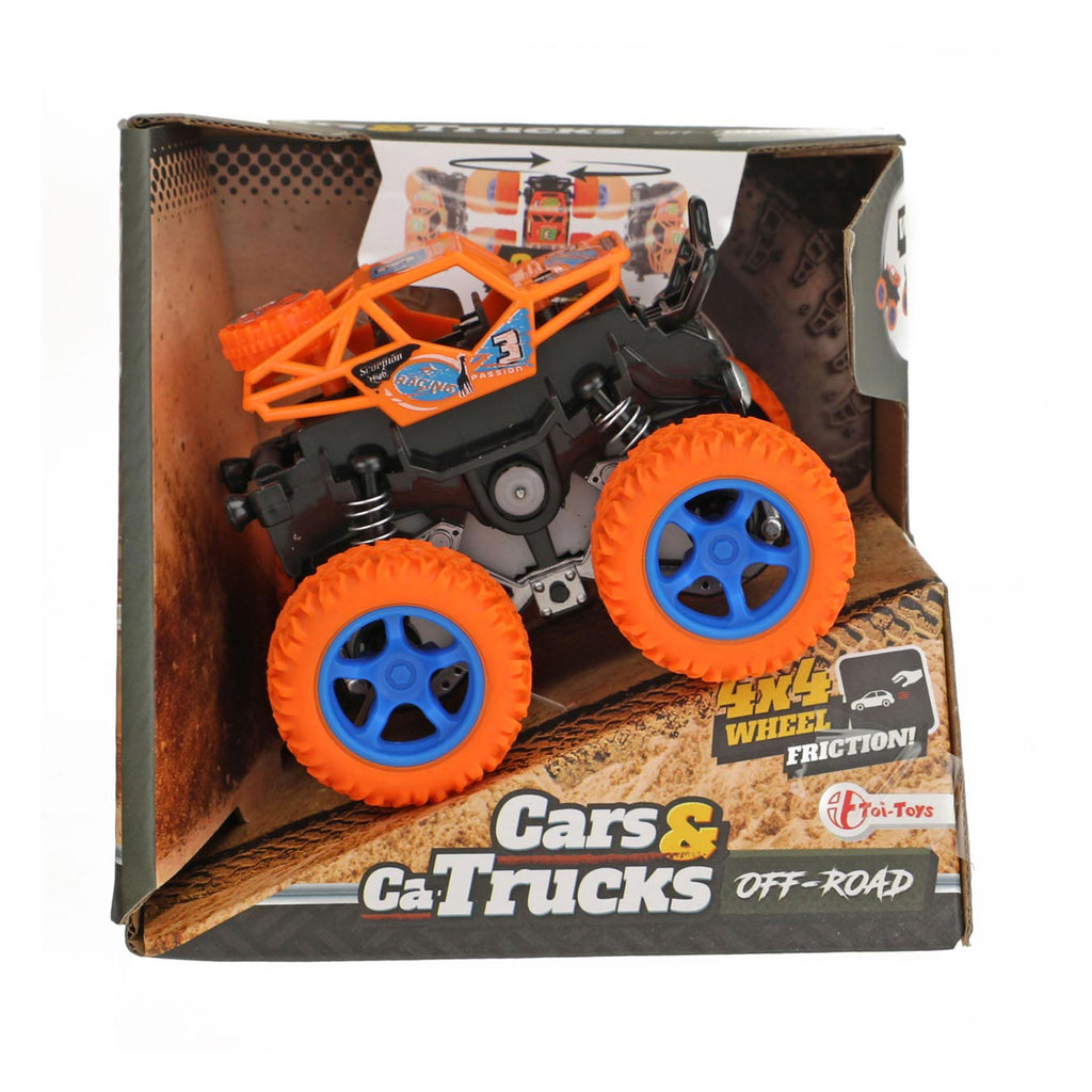 Een monstertruck met dikke profielbanden gaf die vette trucs kunnen uitvoeren. Met de frictiefunctie kan hij zelf rijden na een duw. Met een beetje effect kan hij rondjes draaien op twee wielen of schuin de bocht om gaan. Altijd een verrassing wat hij nu weer laat zien. Verkrijgbaar in 4 kleuren, dus genoeg keuze.