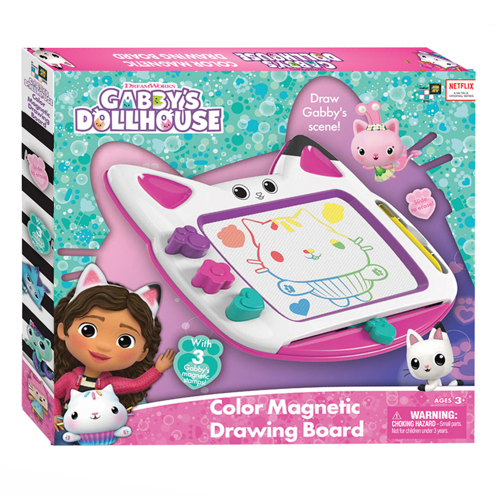Welkom bij Gabby's Dollhouse, waar Gabby's creativiteit en creatieve katten samenkomen voor kleurrijke magie! Kleur en teken alles wat je wilt met dit Gabby's Dollhouse Doodle bord. Met een magnetische pen en drie stempels! Geschikt vanaf 3 jaar.