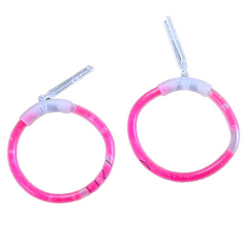 Glow in the dark partypack met één ketting met staaf, twee groene glow in the dark armbanden en twee roze schuifoorbellen. Adviesleeftijd: 3+