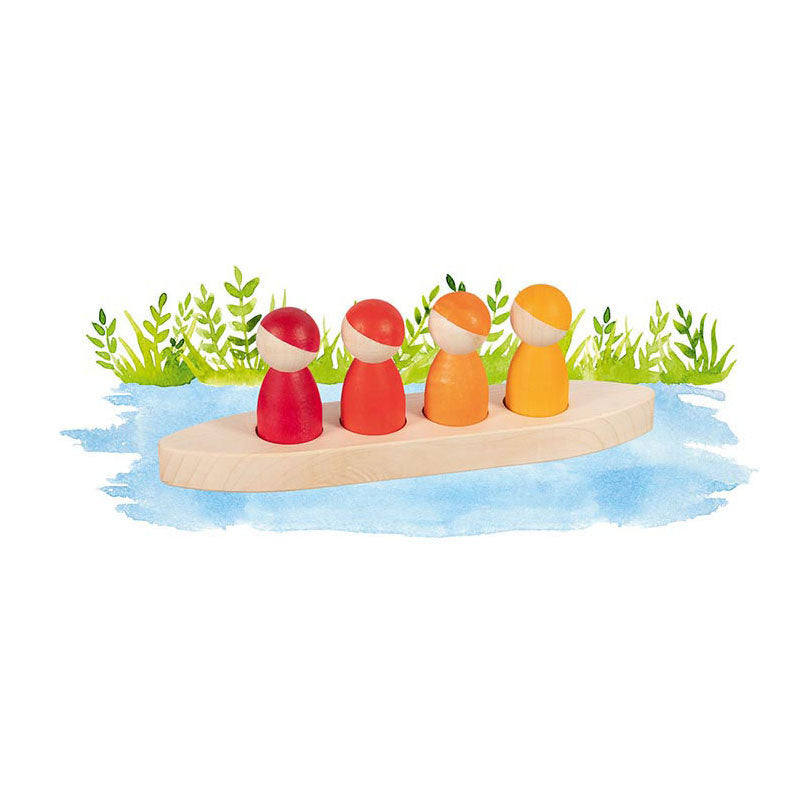 De liefdevol vormgegeven figuren zijn gemaakt van esdoornhout en zijn Made in Europe. Hun neutrale uiterlijk stimuleert de fantasie en maakt ze ideaal voor vrij spel - ze ontlenen hun karakter aan hun individuele houtstructuur en het betrouwbare glazuur. Als de vier houten vrienden met hun boot voor anker willen gaan, vind ze een wereld vol mogelijkheden voor kleine avonturiers met goki-evolutie: een bezoek aan het kabouterhuisje of misschien wel naar het einde van de regenboog? Kenmerken • Aanbevolen leeftijd: 2+ • Herkomst: Gemaakt in Europa • Materiaal: hout • Aantal onderdelen: 5 • Afmeting: 24 cm