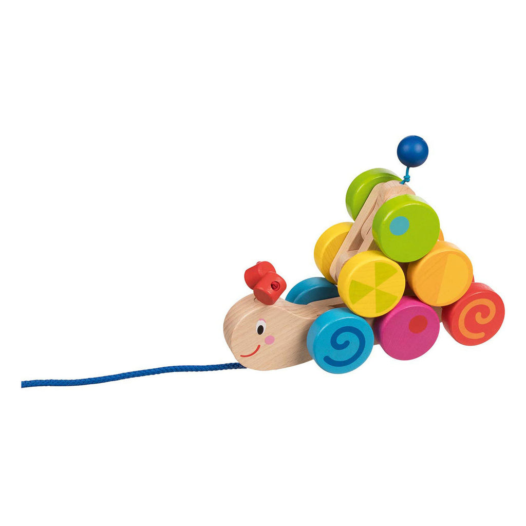 Zelden was een massieve houten rups zo kleurrijke. De in elkaar grijpende schakels zorgen voor een onmiskenbare bende. Het belangrijkste kenmerk zijn de verschillende ontworpen, op elkaar afgestemde wielen, die de bewegende rups met een helder kleurenspel begeleiden. Maar dat is nog niet alles: de schakelingen kunnen tot een piramide worden gestapeld en de rupsen kunnen nog steeds zonder problemen worden voortgetrokken. Kenmerken • Aanbevolen leeftijd: 12m+ • Materiaal: hout • Afmeting: 33 cm