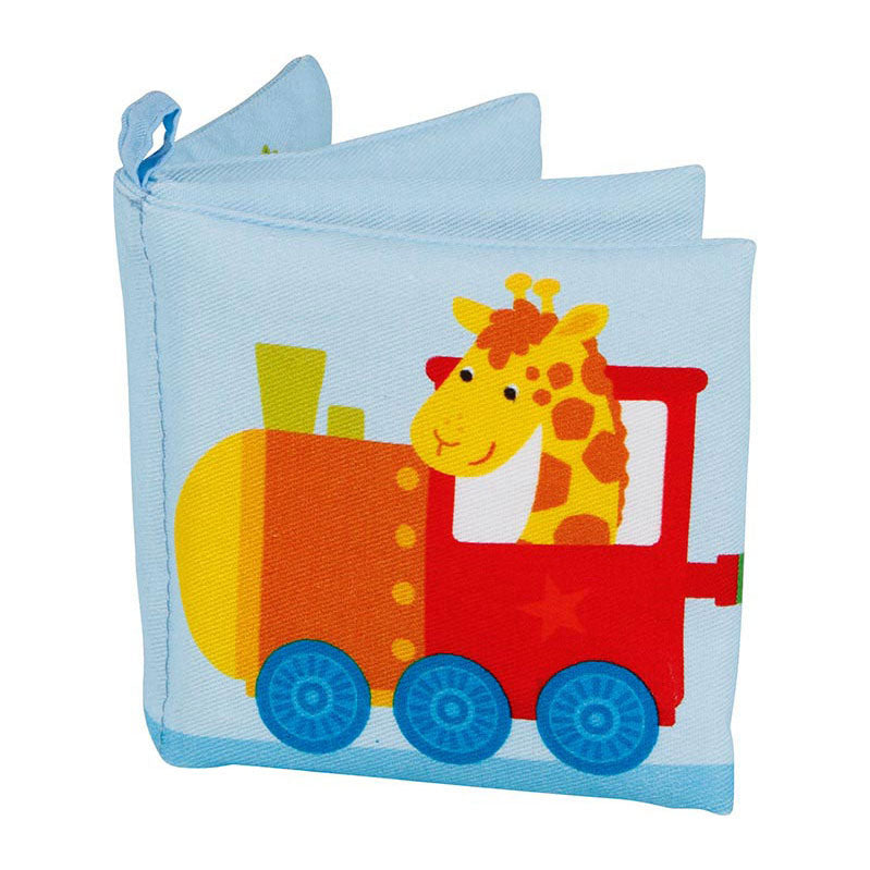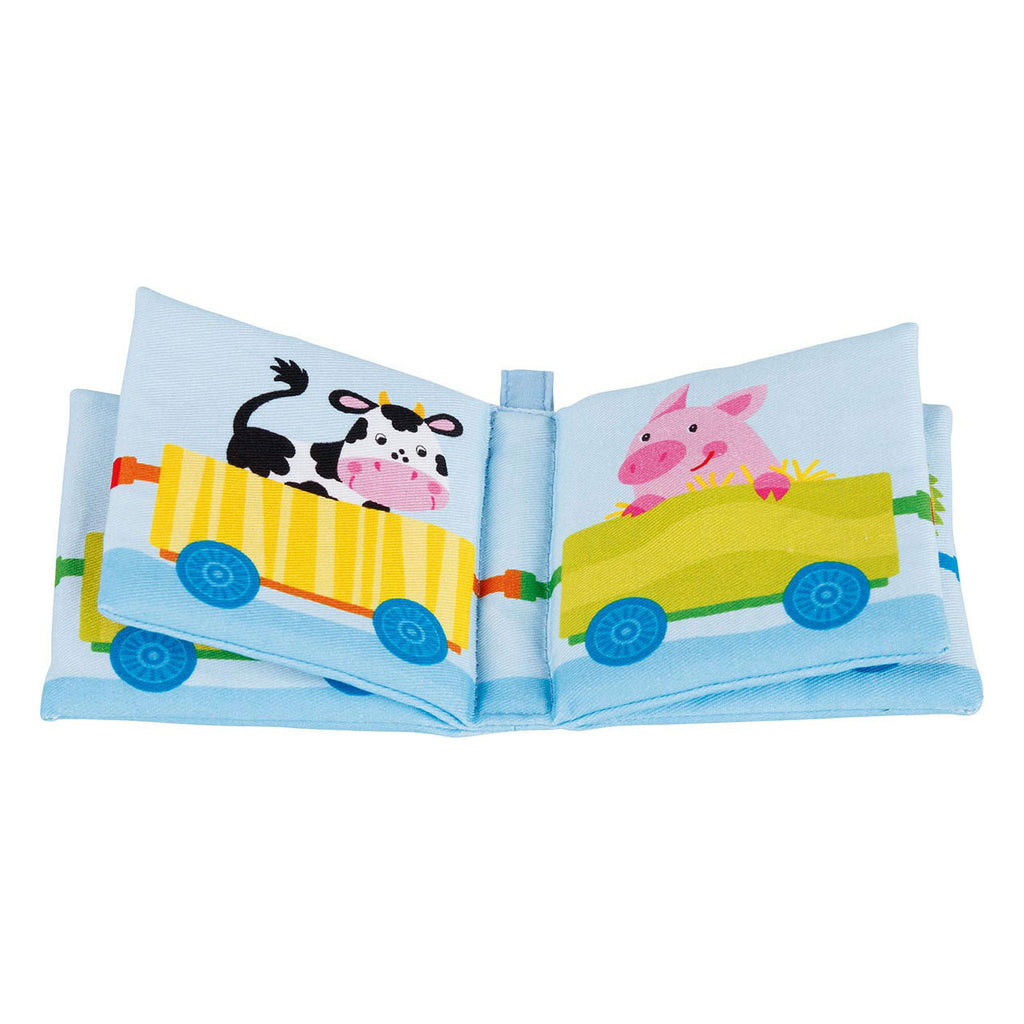 Knisperboekje van Goki met vrolijke illustraties van verschillende dieren in een trein.