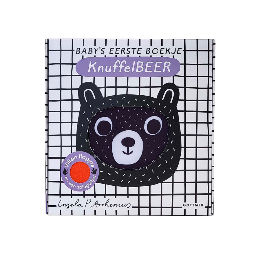 KnuffelBEER' is een superzacht knuffelboekje van stof, speciaal ontworpen voor pasgeboren baby's. Met heerlijk zachte vilten flapjes, knisperende pagina's, een handige lus om aan de buggy of box te bevestigen én een verrassend spiegeltje aan het eind. Het stoffen babyboekje is verpakt in een stijlvolle cadeaudoos - leuk als kraamcadeautje dus! Dit contrastboekje is speciaal ontworpen om de zintuigen van pasgeboren baby's te prikkelen en hun visuele ontwikkeling te bevorderen. Hoe sterker de contrasten zijn, hoe beter een baby iets kan zien. Op elke pagina staan zwart-wit illustraties in de herkenbare stijl van Ingela P Arrhenius. Door de stevige vilten flappen in heldere kleuren, zullen baby's gefascineerd zijn door wat ze zien en voelen. Ingela P Arrhenius is de inmiddels welbekende designer en illustrator achter meerdere reeksen voor baby's en dreumesen zoals 'Waar ben je?' en 'Kiekeboe'. Ze maakt van elk schijnbaar eenvoudig boekje een kleurrijk feestje van ontdekking. Deze multisensorische boekjes zijn het perfecte cadeau voor pasgeboren baby's vanaf 1 maand.