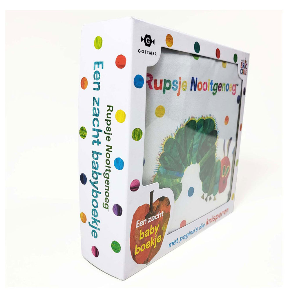 Met 'Rupsje Nooitgenoeg - stoffen boekje' kunnen baby's vanaf 6 maanden al genieten van het klassieke Rupsje Nooitgenoeg-verhaal in vereenvoudigde vorm, maar met net zoveel mooie kleuren, vormen en de geliefde illustraties. Als je op zoek bent naar een leuke en interactieve manier om je baby te helpen bij het leren en ontwikkelen van de fijne motoriek, dan is een stoffen boek voor baby's een uitstekende keuze. Het zachte en veilige boekje is perfect voor grijpgrage babyhandjes: ze zullen het niet snel los willen laten. Het babyboekje is verpakt in een mooie cadeaudoos, kortom: het perfecte kraamcadeau! Rupsje Nooitgenoeg is het bekendste en meest geliefde karakter van schrijver en tekenaar Eric Carle. Hoewel het gelijknamige, iconische prentenboek al meer dan 50 jaar geleden verscheen, staat het nog altijd bij heel veel mensen in de boekenkast. En dat is niet verwonderlijk: de heldere collage-illustraties zijn samen met het vrolijke verhaal nog steeds een feest om te lezen.