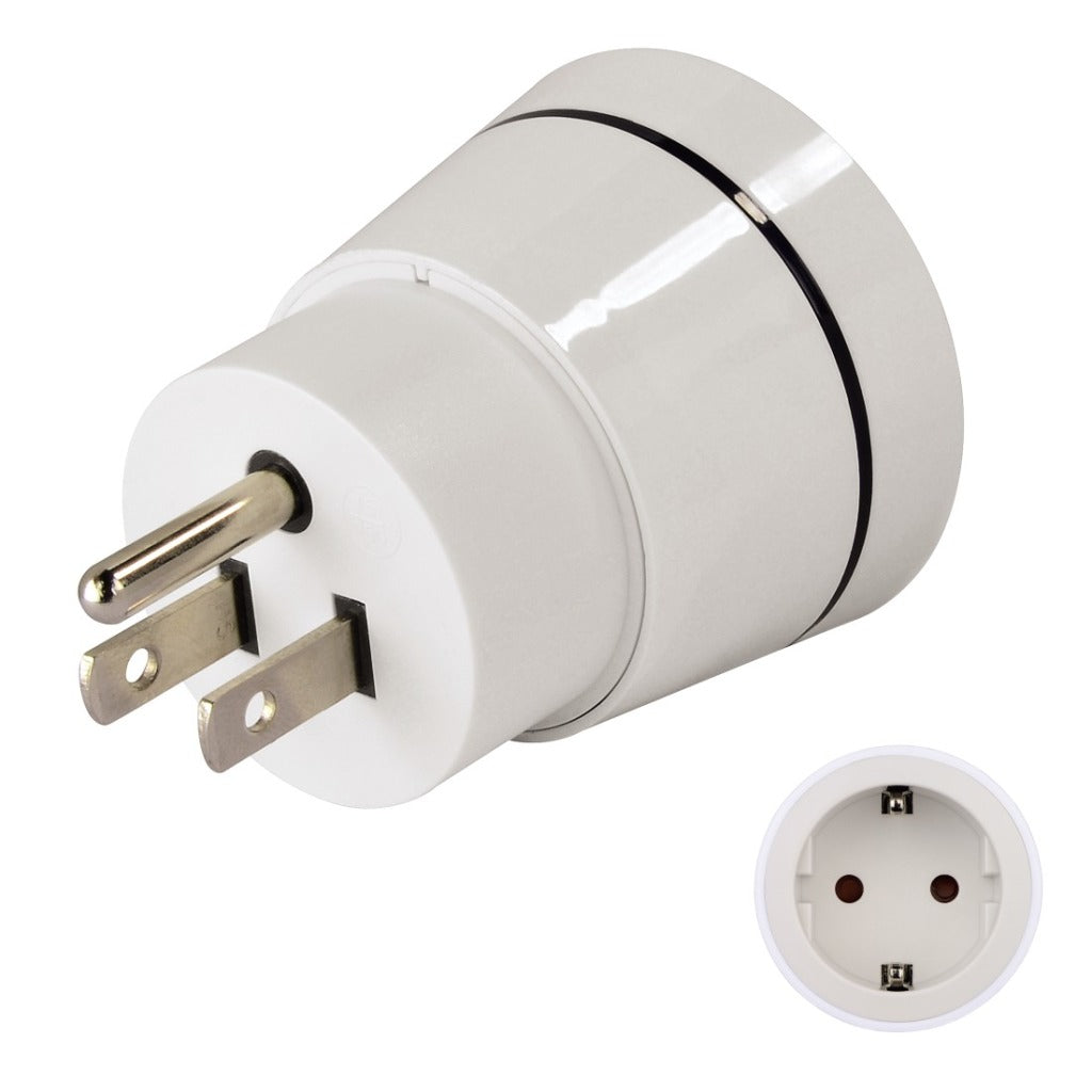 - Past zich aan van Amerikaanse stopcontacten naar Duitse stekkers met aardcontact, gevormde en Euro-stekkers