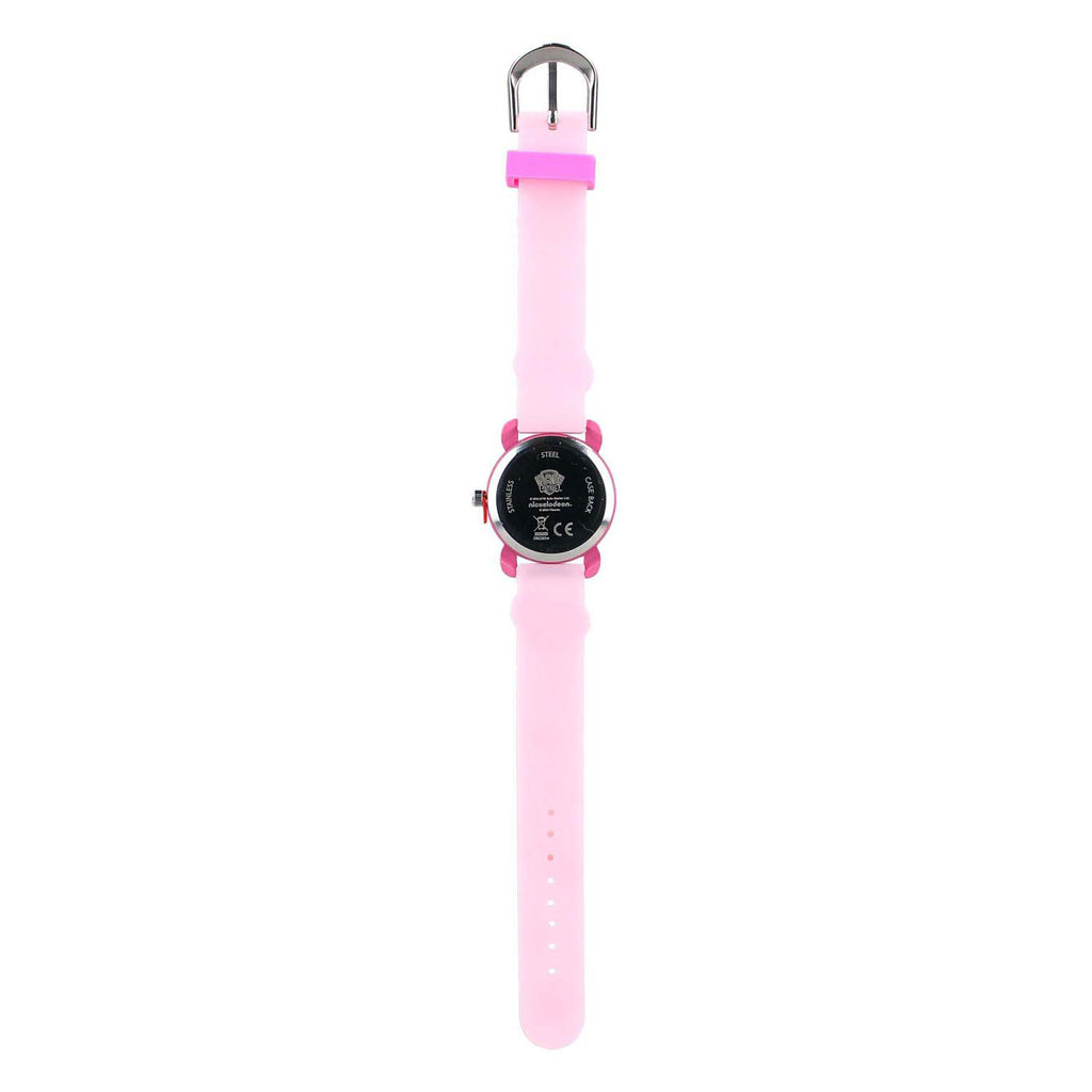 Met dit leuke PAW Patrol horloge uit de Kids Time! collectie kan ieder soort supersnel de tijd lezen en bevatten zijn of haar favoriete tekenfiguur om de pols dragen. Zo komt een soort nooit meer te laat op school of bij de sportles. Dit roze horloge is voorzien van een PVC polsband waarop hartjes, bloementjes en sterretjes zijn afgebeeld. Het horloge heeft een wijzerplaat met de populaire pup Skye afgebeeld. De grote en kleine wijzers zijn roze van kleur. Voor elke pols is dit horloge op maat te maken, omdat de RVC gespsluiting strakker en losser te maken is. Het horloge is spatwaterdicht en heeft een garantie van 2 jaar. Het PAW Patrol horloge wordt geleverd in een mooi, op maat gemaakt doosje zodat het horloge niet beschadigd is.