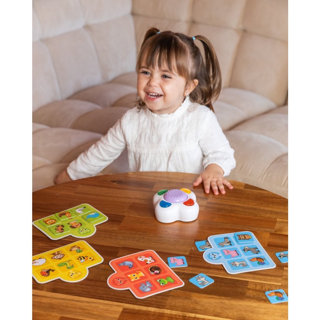 Duik in de spannende wereld van Bingo-dieren, waar je alles over dieren kunt ontdekken! Deze interactieve versie van het klassieke bingospel heeft een elektronisch geluidsapparaat, 4 dierenborden en 24 fiches, waardoor het perfect is voor het spelen met familie, vrienden of alleen. Kinderen leren verschillende dieren en hun bijbehorende geluiden te herkennen, wat sociale interactie en gezamenlijk spel bevordert terwijl ze zich vermaken. Bingo Zoo combineert plezier met educatieve waarde, waardoor het een boeiende activiteit is voor kinderen terwijl ze de geluiden van het dierenrijk verkennen! Geschikt voor kinderen vanaf 2 jaar.