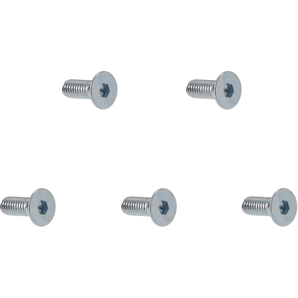 Vervangende M3 x 8 platkopschroefbevestiging voor derailleurhangers. • Draad: M3-0,5 • Totale lengte: 8 mm • Materiaal: staal • Te gebruiken met een inbussleutel van 2 mm • Zak met 5 stuks