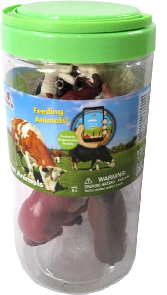 Simba boerderijdieren in ton, van 6 boerderijdieren in kunststof. Ze worden geleverd in een handige meeneemkoker met handvat. Deze set is goed voor urenlang speelplezier. de lengte van de koe is 13 cm.