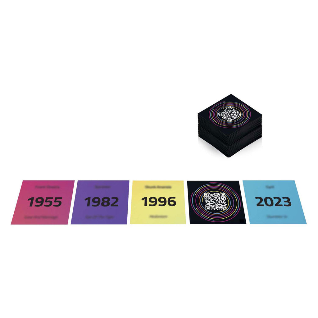 Laat je meeslepen door de magie van filmmuziek met HITSTER Movie & TV Soundtracks! Deze speciale editie neemt je mee op een nostalgische reis door de grootste soundtracks van films en series uit verschillende decennia.Test je kennis terwijl je iconische nummers chronologisch gerangschikt en herbeleef de hoogtepunten van film- en tv-geschiedenis. Weet jij als eerste 10 nummers in de juiste volgorde te plaatsen? Dan mag jij je kronen tot de ultieme HITSTER! Perfect voor fans van muziek, films en een beetje competitie!Deze nieuwste versie van HITSTER komt in een kleinere met 150+ dooskaartjes. De ideale uitbreidingsset voor jouw favoriete muziekspel!Zo speel je het:Kies een muziekkaart en scan de QR-code met de Hitster-app om het automatisch af te spelen op Spotify*.Raad wanneer het nummer wordt uitgebracht en plaats de kaart op de juiste plaats in jouw muziektijdlijn.Draai de muziekkaart om. Heb je het jaartal goed geraden? Dan hou je de muziekkaart om je tijdlijn verder mee uit te bouwen.Verschillende speelniveaus:Hitster heeft verschillende speelniveaus, zo is het spel voor iedere muziekliefhebber een uitdaging!Original Instant Party! Leg de muziekkaarten op de juiste plek in jouw muziektijdlijn.Pro Jij kent je muziek! Laat zien hoe goed je artiesten en hun liedjes kent.Expert Hardcore HITSTER! Je houdt van muziek en kent de titel, artiest en jaar uit je hoofd! Coöperatie Werk samen! Creëer samen met jouw vrienden één muziektijdlijn.In het kort:PARTYGAME: Voor volwassenen vanaf 16 jaar, voor 2 tot 10 spelersEASY PLAY: De geselecteerde spelregels maken dat je het spel snel kunt experimenterenGREATEST HITS: De grootste TV & Filmhits zorgen voor een instant feest voor iedereen...gegarandeerd! VERSCHILLENDE NIVEAUS: Competitieve, coöperatieve en solo speeloptie, zo kun je in elk gezelschap een feestje creëren!INHOUD: 150 muziekkaarten