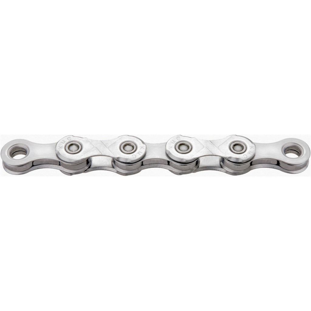 De KMC X12 zilveren ketting is een hi-performance ketting die geschikt is voor SRAM 12-speed derailleursystemen. Deze ketting heeft een extreem duurzaam ontwerp en is niet lusrichting gebonden. Met een gewicht van 268 gram en een lengte van 126 schakels, biedt deze ketting een betrouwbare en soepele werking. De ketting is half vernikkeld en heeft een zilveren kleur, waardoor hij er stijlvol uitziet op je fiets. Met een pinlengte van 5,2 mm is deze ketting perfect voor 12-speed aandrijfsystemen.