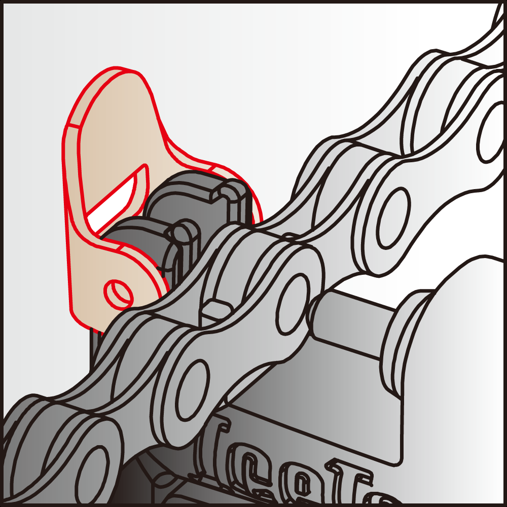 Un guide de forme spéciale assure la position correcte de la chaîne afin que vous n'ayez plus à la placer à la main. Prévient les doigts gras.